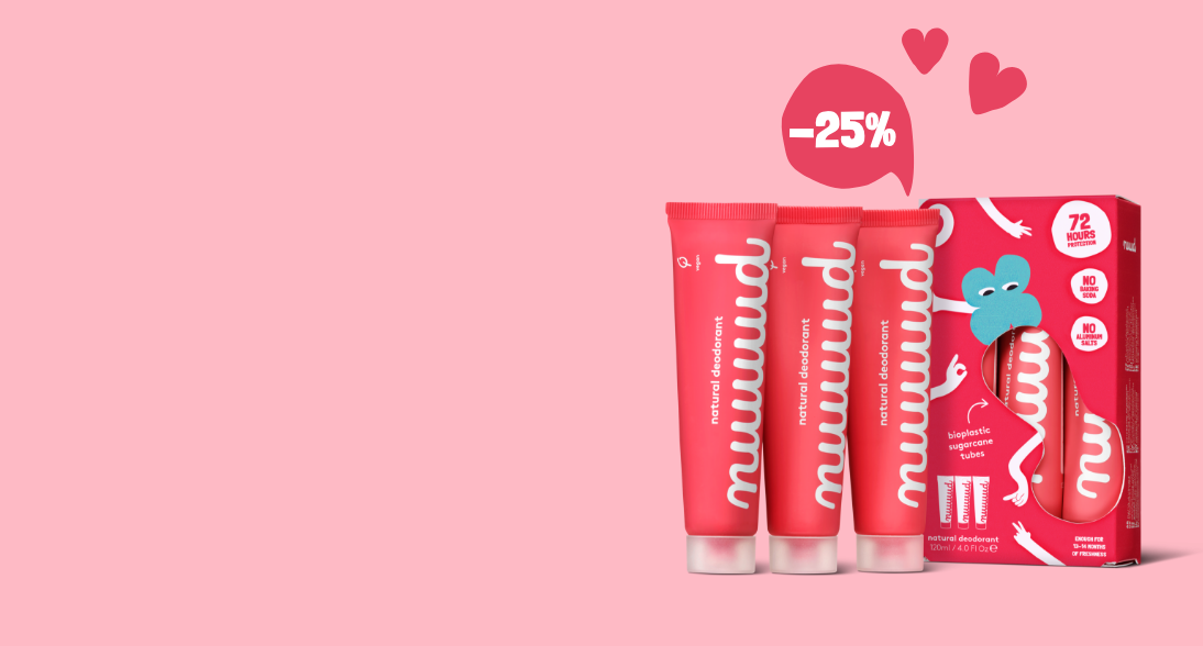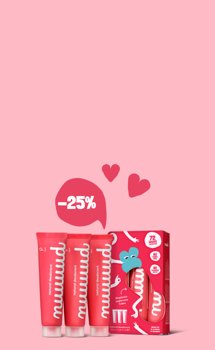 nuud è un deodorante al 100% naturale e vegano che resta efficace per diversi giorni di seguito. La nostra formula super efficace è stata creata considerando il nostro amore per le ascelle fresche e il microbioma naturale del corpo.